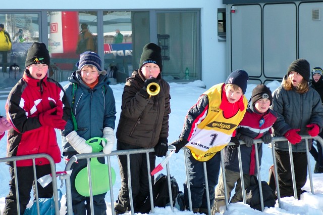 ![]() Die jungen Fans feuerten die Sportler begeistert beim Zielenlauf an. |